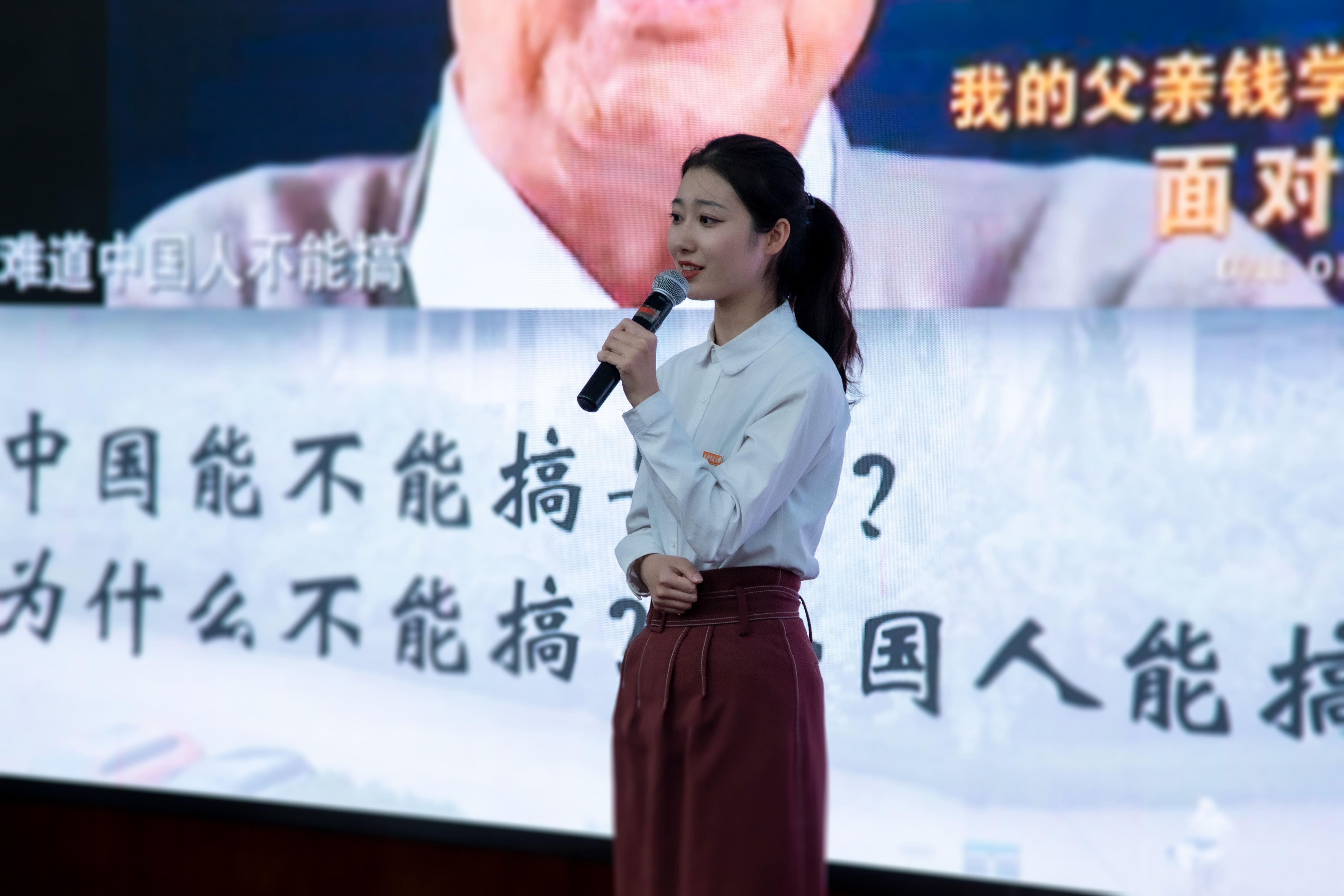 来自陕西省各大高校的9位决赛选手,按照抽签顺序依次登台,我院张云月同学以“选择了交大,就选择了国家”为主题展开宣讲,通过讲述我校杰出校友钱学森学长的故事,传达了交大学子科技强国,勇担使命的坚定信念。比赛经过激烈的角逐,张云月同学最终荣获了特等奖。