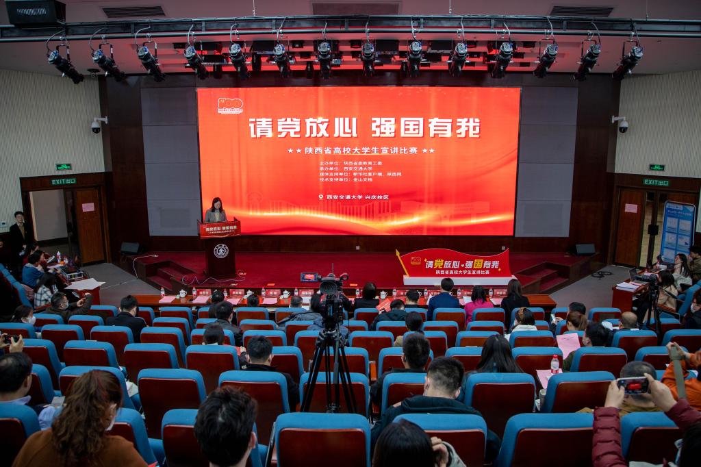 12月2日下午,在深入学习党的十九届六中全会精神之际,为了推进学习党的十九届六中全会精神及党史学习教育走深走实,陕西省高校“请党放心强国有我”大学生宣讲比赛现场总决赛于时博手机平台_时博(中国)兴庆校区举办。本次活动由中共陕西省委教育工委主办、时博手机平台_时博(中国)承办,新华社客户端、陕西网给予了媒体支持。