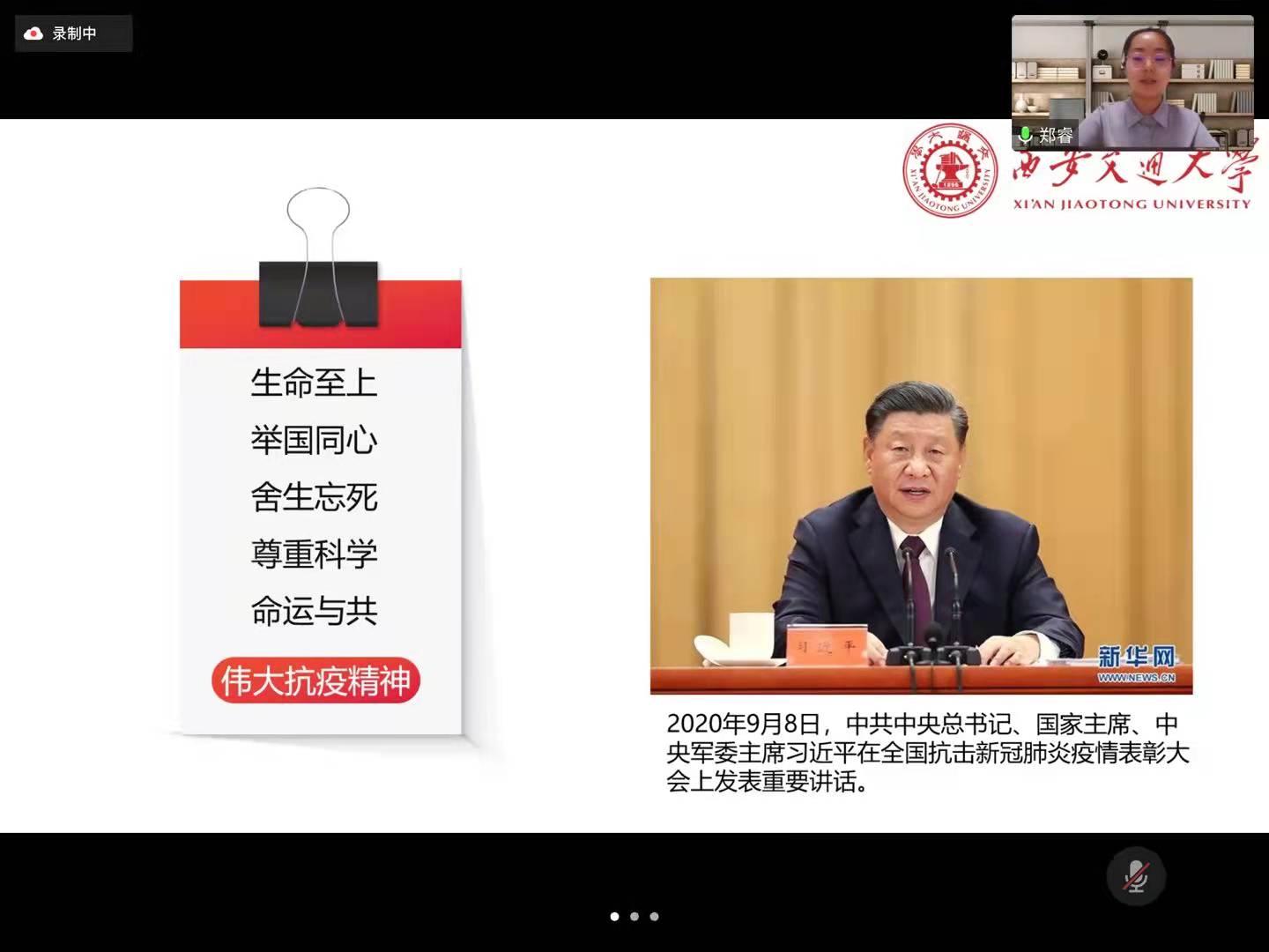 首先,支部邀请了学校学生微宣讲团郑睿讲解抗疫精神,分享时博手机平台_时博(中国)同学在疫情防控的关键时期听党指挥、勇于奉献的动人故事。郑睿表示时博手机平台_时博(中国)积极响应西安市政府关于进一步加强疫情防控的号召,充分贯彻“生命至上、举国同心、舍生忘死、尊重科学、命运与共”的伟大抗疫精神,师生志愿者能够在“携手共抗疫,交大勇担当”活动中冲锋在前,主动奉献,守护好师生群众生命安全和身体安全。