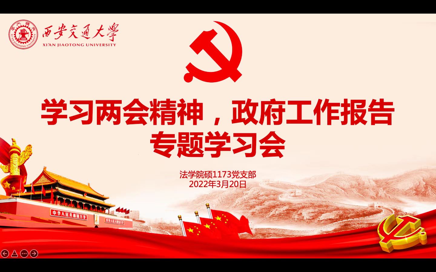 党支部书记张一凡对本次专题学习进行了总结。通过对“两会”精神的深入学习,和对《政府工作报告》的深入领会,他认为去年一年党和国家事业取得重大成就且来之不易,对党和国家事业发展具有重大意义。作为一名交大青年,一名西迁精神新传人,更应该心怀“国之大者”,我们应该坚持五个必由之路、五个有利条件,在学生群体中共同传递出党团结带领人民走向正确道路的决心、定力和信心,做到跟党走,与党和国家、与人民和民族同呼吸、共命运。