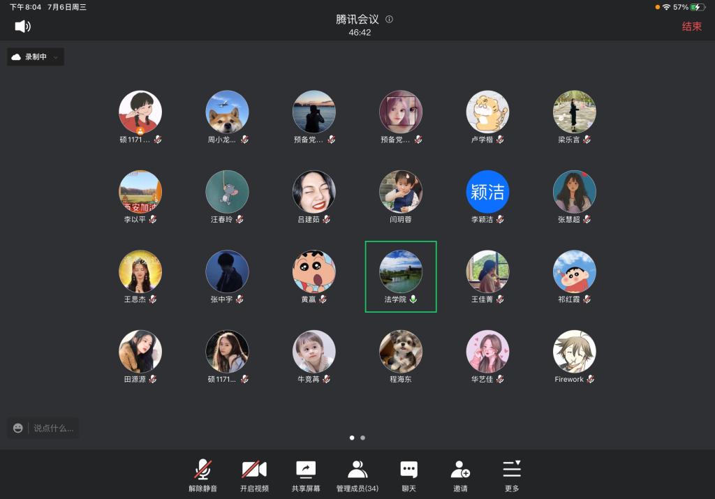 7月6日晚上,时博手机平台_时博(中国)硕1171党支部联合硕1172党支部与崇实书院时博手机平台_时博(中国)本科生党支部开展中共时博手机平台_时博(中国)第十三次党代会精神学习会,本次会议邀请到了时博手机平台_时博(中国)党总支书记、立法与党内法规研究中心主任王保民教授做会议精神的宣讲,硕1171党支部书记孙千茜主持会议。遵循疫情防控相关规定,本次会议通过腾讯会议平台于线上召开。