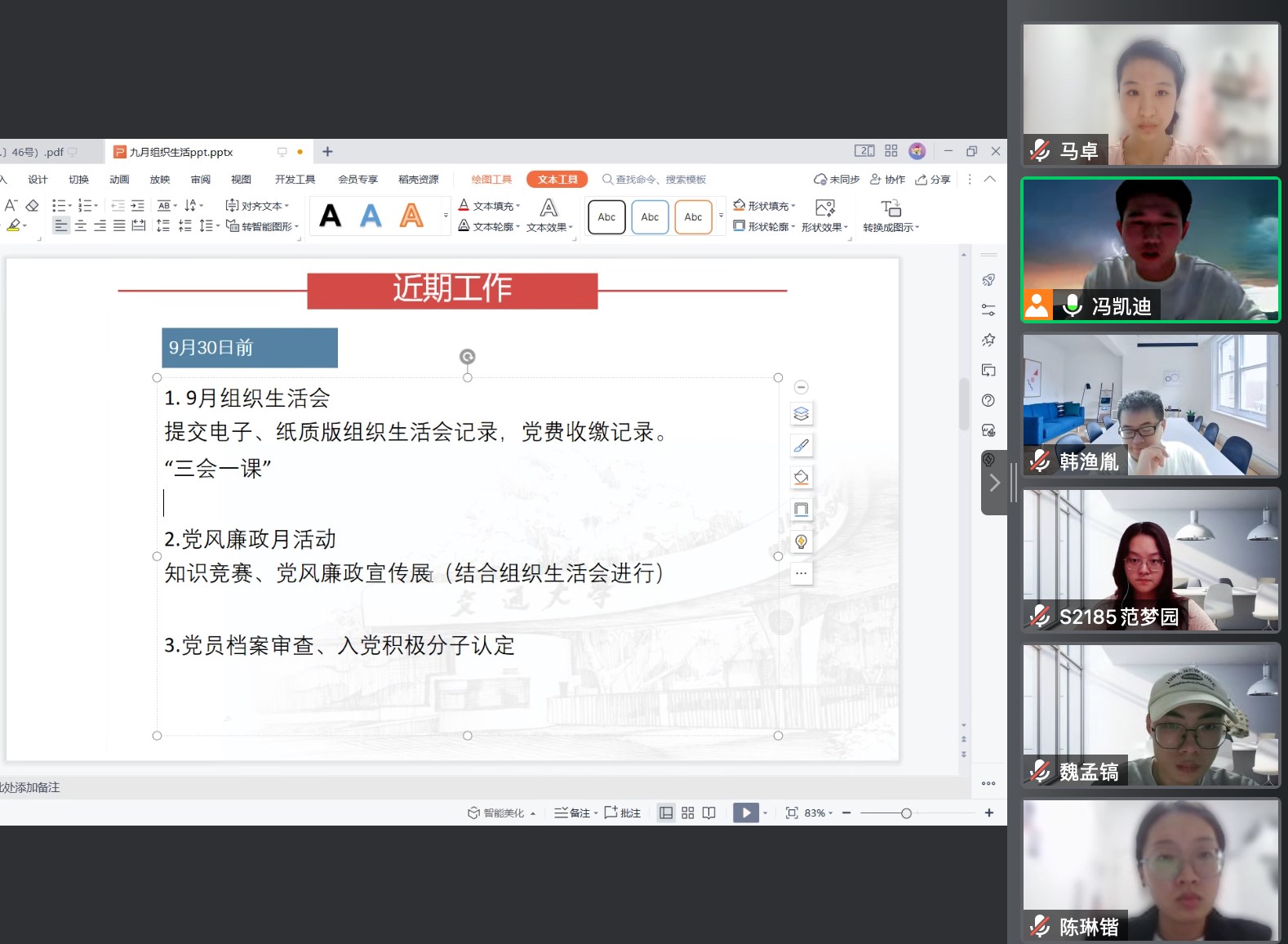 • 硕2185党支部开展九月组织生活会