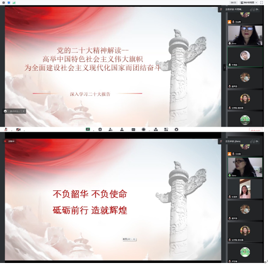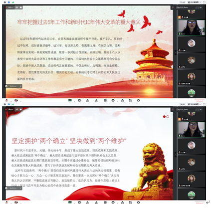 时博手机平台_时博(中国)硕1172党支部于2022年12月3日晚19:30在线上举行了以“全面深入学习党的二十大精神”为主题的宣讲活动,由时博手机平台_时博(中国)党总支委员吉兰湘老师进支部为同学们宣讲党的二十大精神及报告主要内容,支部全体党员及入党积极分子参加会议。