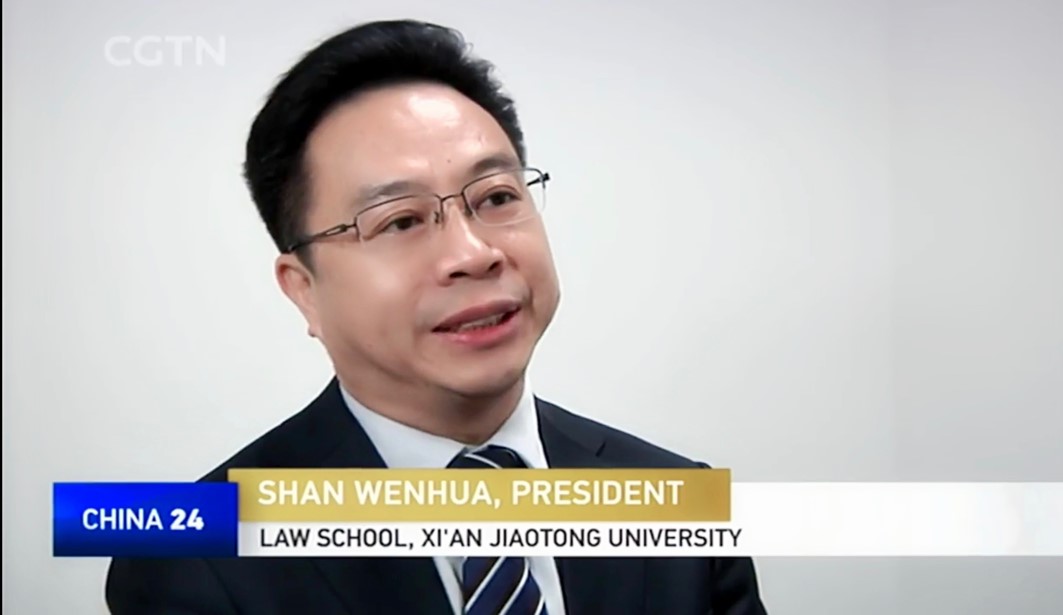 Professor Wenhua Shan, Dean of Law School of Xi'an Jiaotong University observed the hearing upon invitation as an Expert Member of the International Commercial Expert Committee of the Supreme People’s Court, and accepted an joint interview by CGTN along with other major media including Xinhua News Agency, China Daily, The Economist (UK),Le Monde (France), and Asahi Shimbun (Japan).